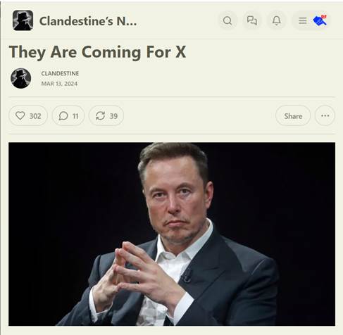 Most readers know that the leftists who deplatformed Parler, who cost Musk’s X most of its advertisers and are trying to silence him, who came after Spotify, and so on, also attacked Substack.