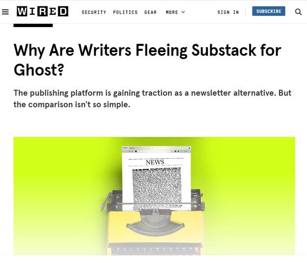 And then later a Wired article recommending that writers leave Substack: “The Best Substack Alternatives: These four alternatives to the newsletter platform offer just as many—if not more—features.”