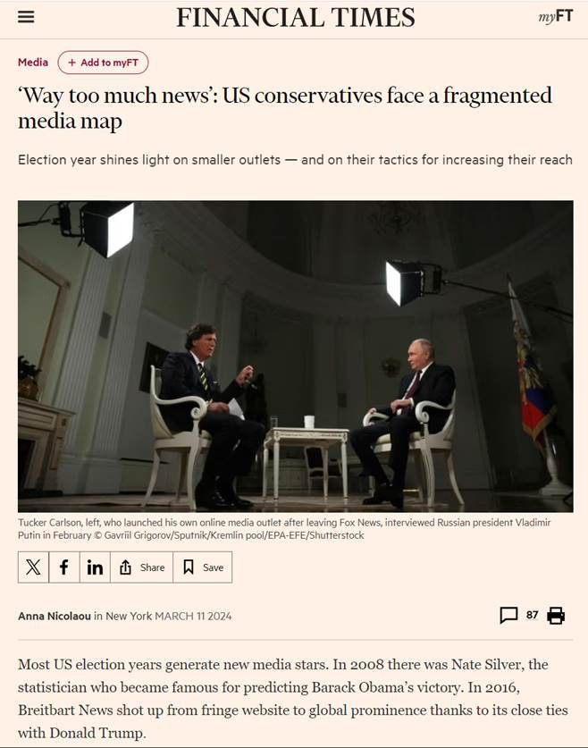 Last week, the Financial Times published an article in titled “‘Way Too Much News’: US Conservatives Face a Fragmented Media Map” scouting ways to continue the attack. The article was really about Substack allowing way too much freedom.