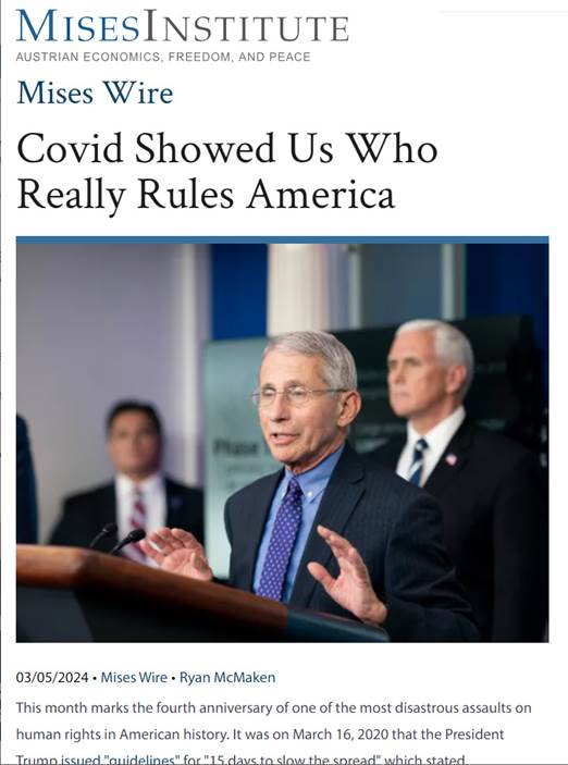 Ryan McMaken, "Covid Showed Us Who Really Rules America" Mises Wire (2024)