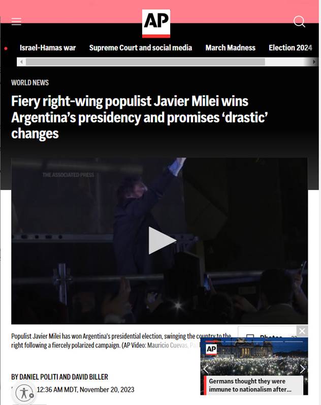 Recently, the rightist Javier Milei was elected president in Argentina by a large majority.