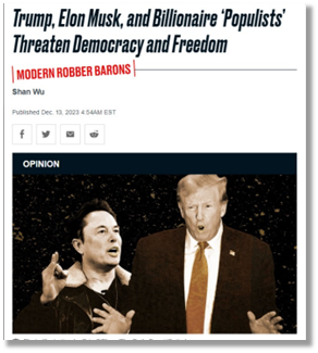 While the mass media pretends that leftist despotism is “democracy”, they say that our calls for democracy are “populism”. Their "democracy" is the anti-democratic leftist regime now controlling the US government and the big institutions.